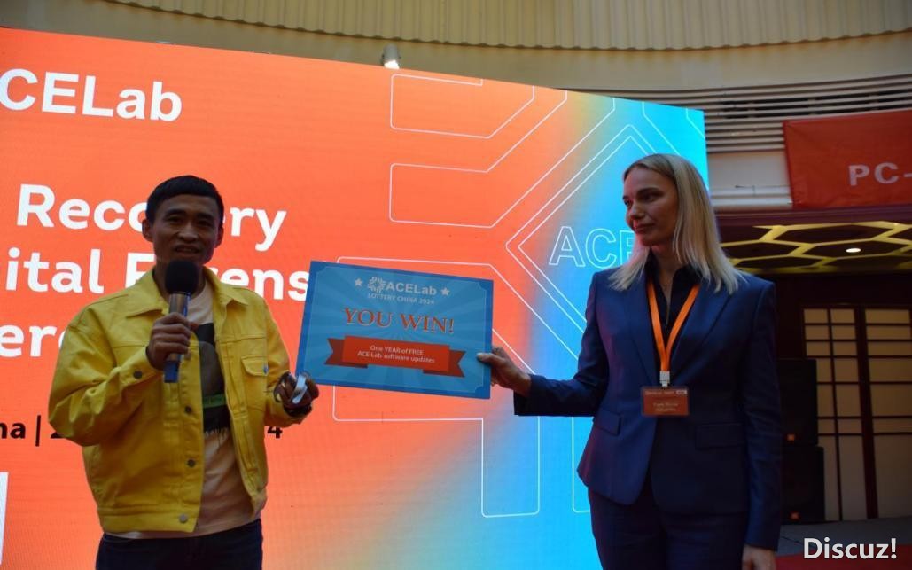 随着本次数据恢复和数据取证技术交流会进入尾声,我们迎来了激动人心的抽奖环节, 作为对参与者的回馈,军达成和 ACELab 精心准备了一系列丰厚的奖品,一等奖可以获得其 注册名下的设备两年免费软件更新服务,二等奖可以获得其注册名下的设备一年免费软件更新服务,三等奖可以获得其注册名下的设备两次免费软件更新服务。抽奖过程中,气氛热烈 而紧张,每个人都期待着幸运。当一个个奖品被抽出,获奖者们脸上洋溢着喜悦和激动.