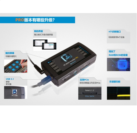 PC-3000 Portable PRO系统新!由PC-3000便携式PRO硬件和软件组成,用于在办公室和现场从SATA/PATA/USB HDD、PCIe/SATA
